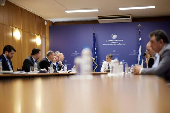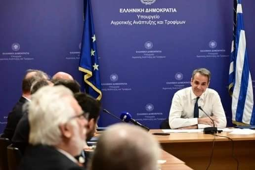 Ο Πρωθυπουργός Κυριάκος Μητσοτάκης συνοδευόμενος από τους Υπουργούς παρά τω πρωθυπουργώ, επισκέφθηκε σήμερα το Υπουργείο Αγροτικής Ανάπτυξης και Τροφίμων. Τον υποδέχθηκε η νέα πολιτική ηγεσία του υπουργείου (ο Υπουργός Κώστας Τσιάρας με τους Υφυπουργούς Διονύση Σταμενίτη και Χρίστο Κέλλα) οι Γενικοί Γραμματείς του ΥΠΑΑΤ και οι Πρόεδροι των εποπτευόμενων Οργανισμών. Ο Πρωθυπουργός με την επίσκεψη του συμβολικά και ουσιαστικά, ανέδειξε για μια ακόμη φορά την προτεραιότητα της κυβέρνησής για τον αγροτικό κόσμο και τον πρωτογενή τομέα. Η βελτίωση και αναπροσαρμογή της νέας ΚΑΠ, η ενίσχυση της ανταγωνιστικότητας, οι παρεμβάσεις για την μείωση του κόστους παραγωγής, του κόστους ενέργειας και των φυτοφαρμάκων, η προσαρμογή στα νέα δεδομένα της κλιματικής κρίσης, αλλαγές και μεταρρυθμίσεις στους εποπτευόμενους οργανισμούς, δίκαιες καταβολές ενισχύσεων σε όσους πραγματικά παράγουν, συνθέτουν τους κεντρικούς άξονες της αγροτικής πολιτικής.