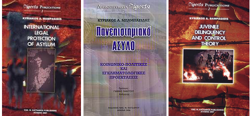 Ο Κυριάκος Μπαμπασίδης έχει συγγράψει τα ακόλουθα βιβλία: Πανεπιστημιακό Άσυλο. Πληροφορίες εδώ >> Juvenile Delinquency and Control Theory. Πληροφορίες εδώ >> International Legal Protection of Asylum. Πληροφορίες εδώ >>